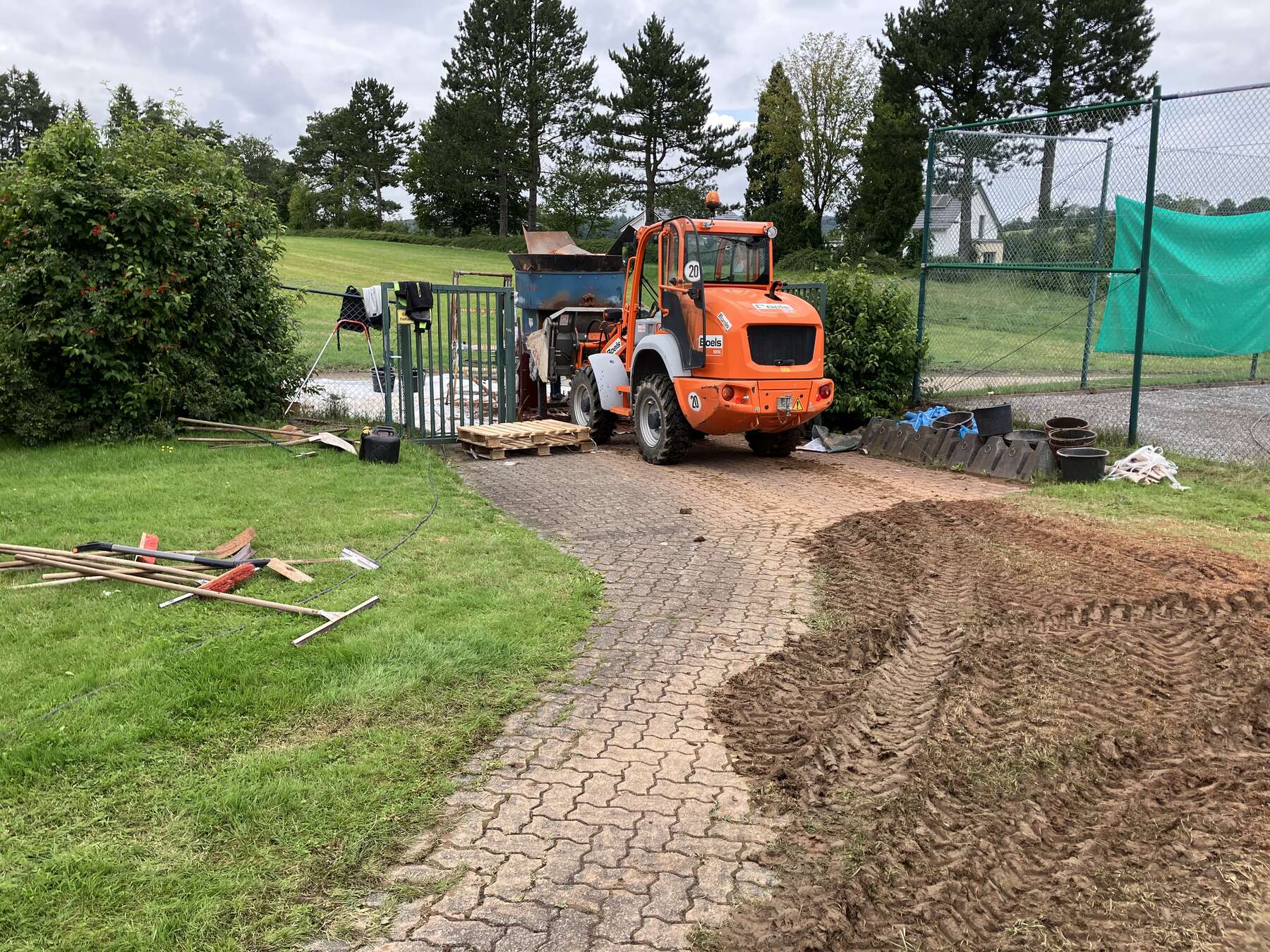 Die Durchführung der Bauarbeiten sind ab dem 13.07.2023 geplant. Zuerst wird auf den Plätzen 1 und 2 die oberste Schicht abgetragen und eine neue Lava-Schicht eingebaut. Diese Arbeiten dauern ca. 1-2 Wochen. Ab dem 31.07. wird die Firma Sportas den neuen Belag mit Ziegelmehl verarbeiten. Zum Abschluss wird das Granulat auf Platz drei durch Ziegelmehl ersetzt. Auch hierfür werden bis zu 2 Wochen Arbeitszeit kalkuliert. Während der Bauzeit steht uns der dritte Platz weiterhin zur Verfügung.
