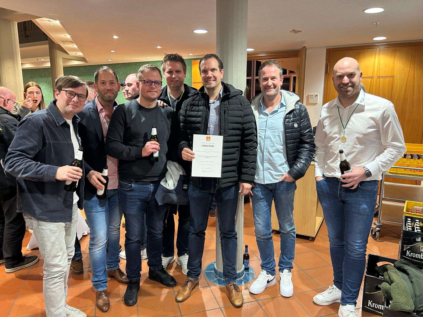 Ebenso ausgezeichnet wurden die Herren 30 für ihren Aufstieg von der Bezirksklasse in die Bezirksliga. Die Mannschaft wurde unter anderem durch ihren Mannschaftsführer Manuel Simm repräsentiert, der ebenfalls eine Urkunde und ein Präsent entgegennehmen durfte.