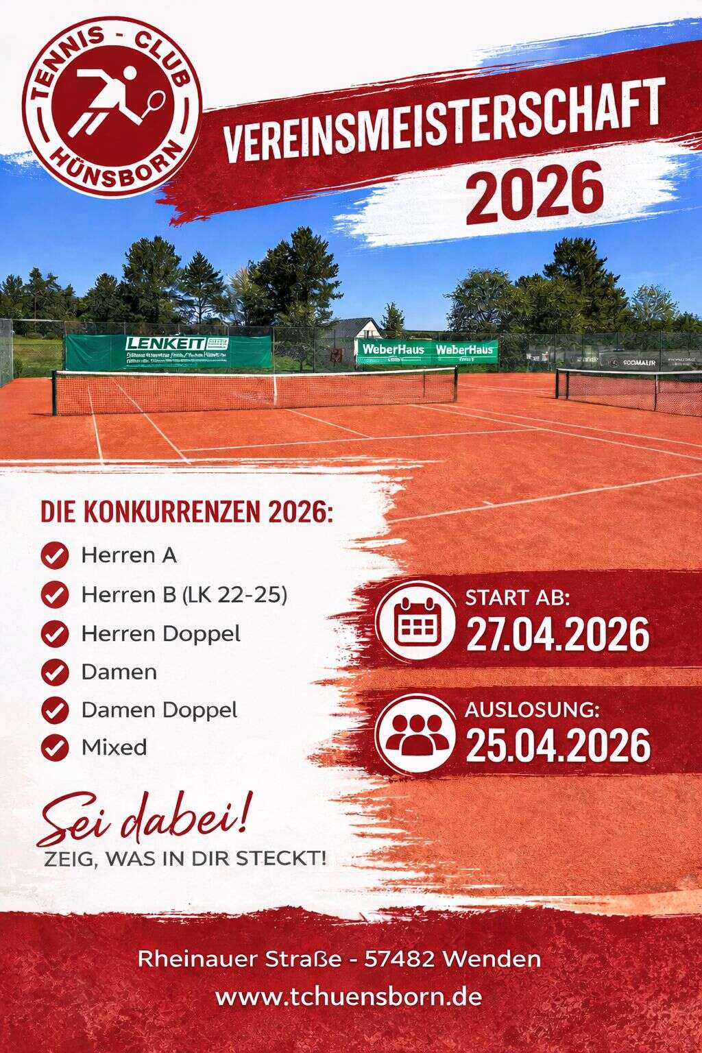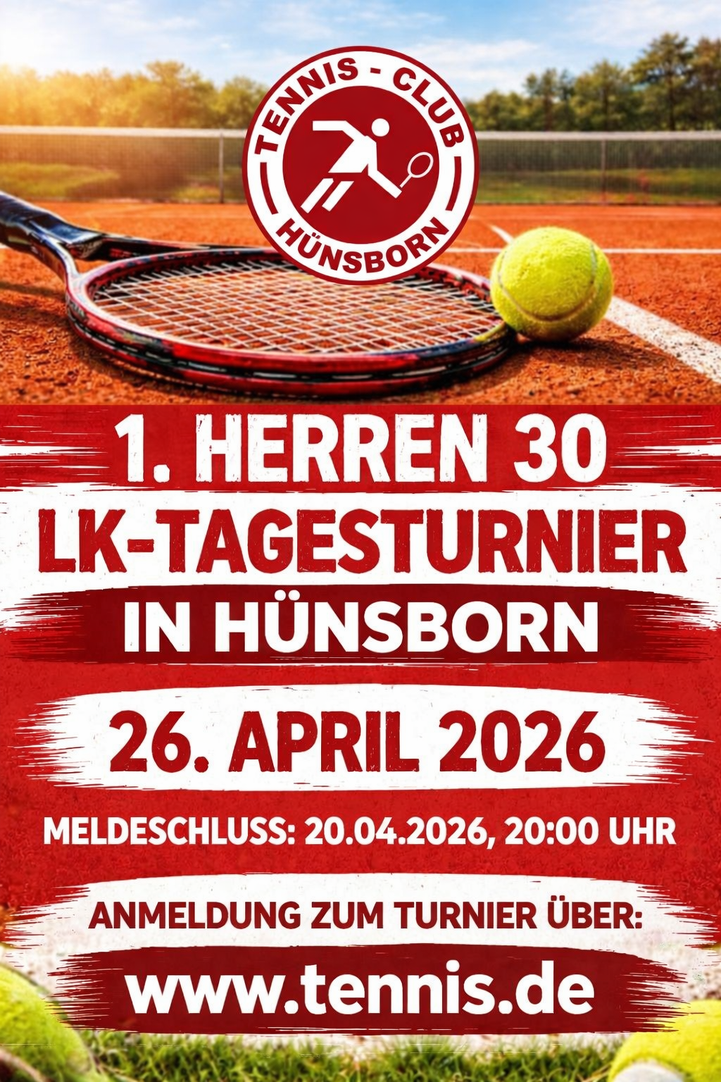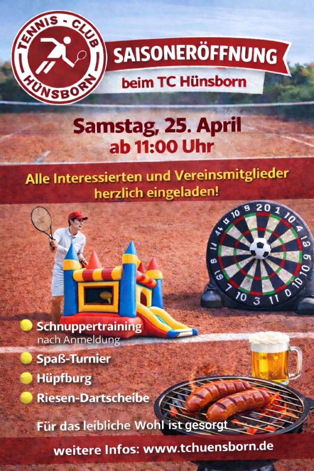 Am 25.04.2026 eröffnen wir offiziell die Tennissaison beim TC Hünsborn – wir freuen uns auf euch!